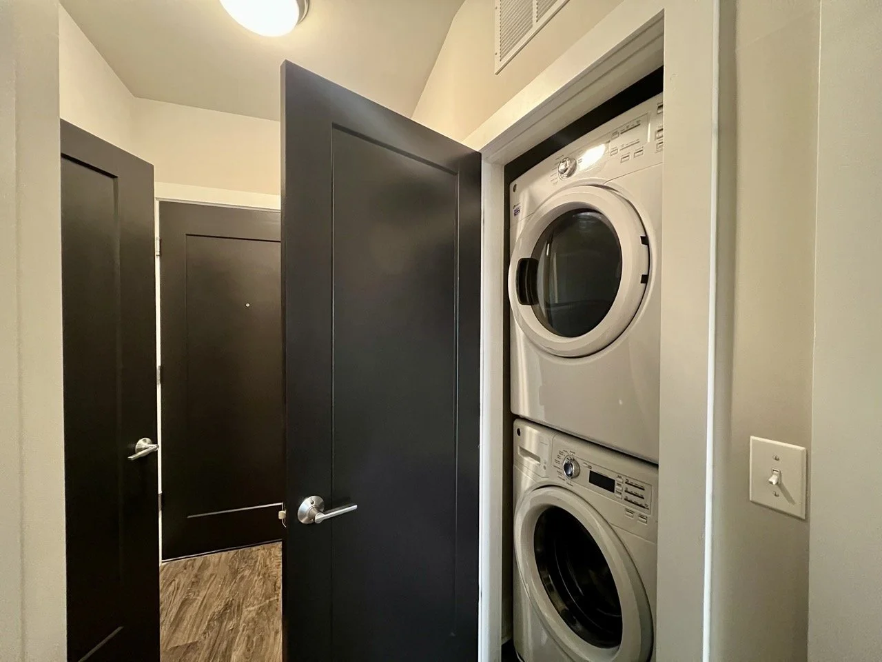Includes one assigned, underground parking space (#21) plus in-unit washer and dryer. Tenants responsible for electricity, cable/internet while gas, water and trash are included.