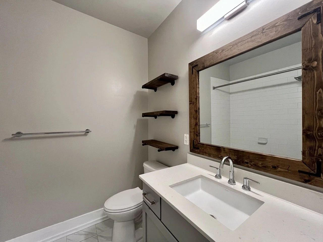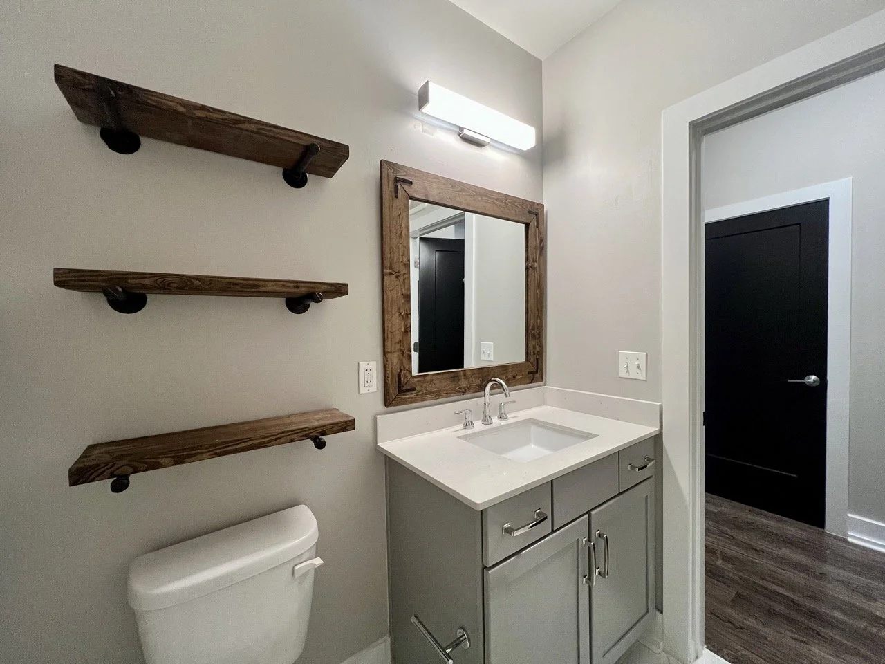 Enjoy entertaining in the open living/dining room area. You'll love the smart features including a keyless lock entry and programmable Nest thermostat. The spa-inspired bath features a stunning soaking tub, an oversized vanity and beautiful wood floating shelves with matching mirror.