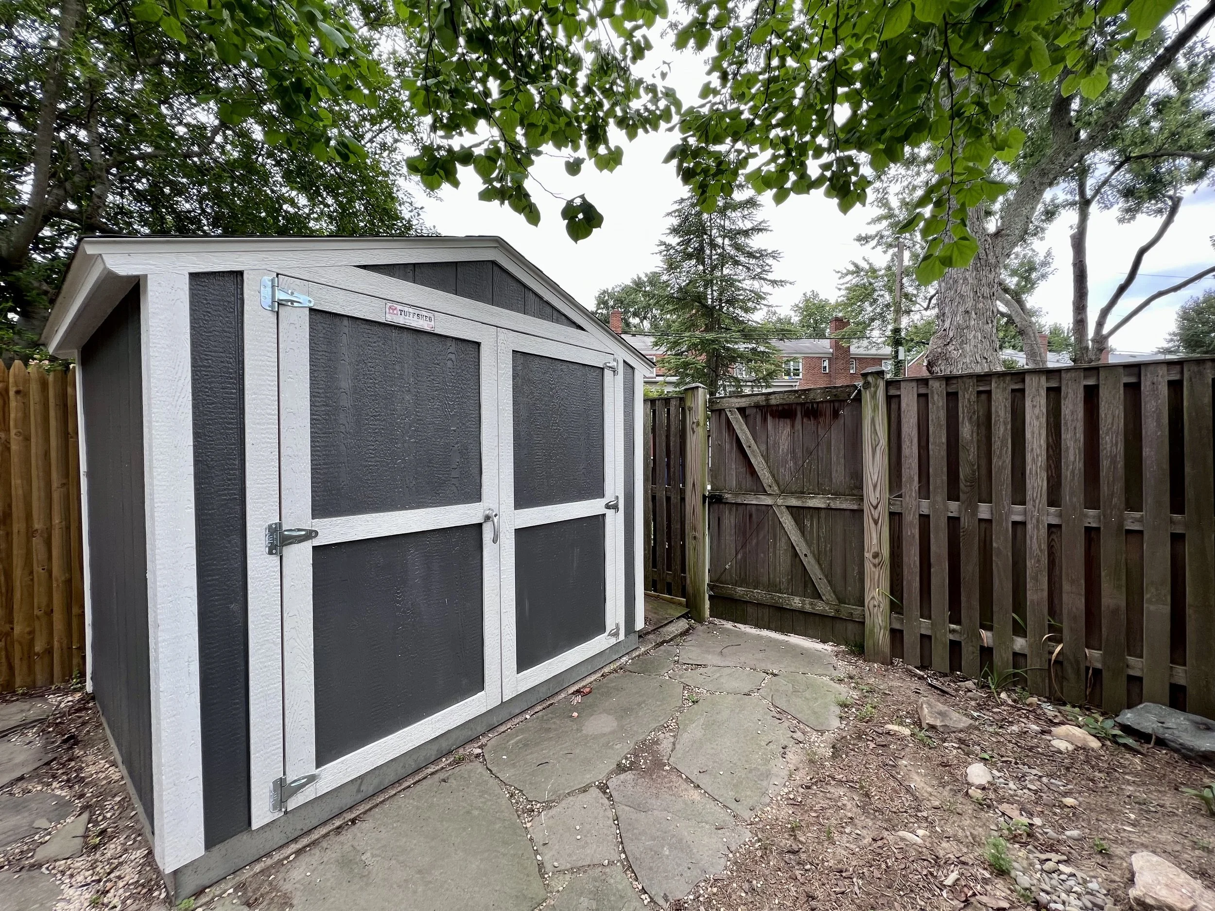 The back patio offers serenity and privacy with a 6 ft fence, large storage shed and gate to the rear, grassy common area and playground!