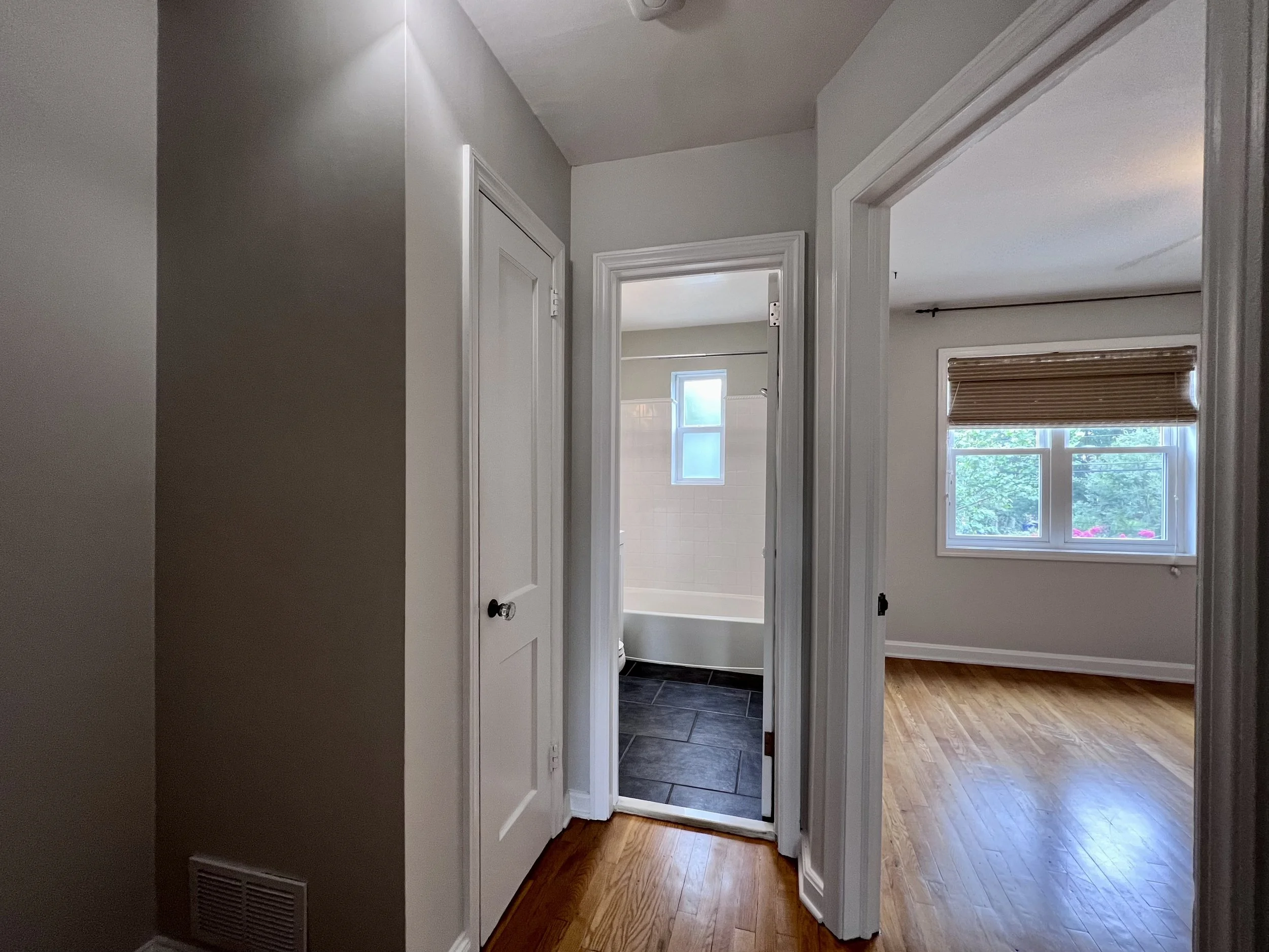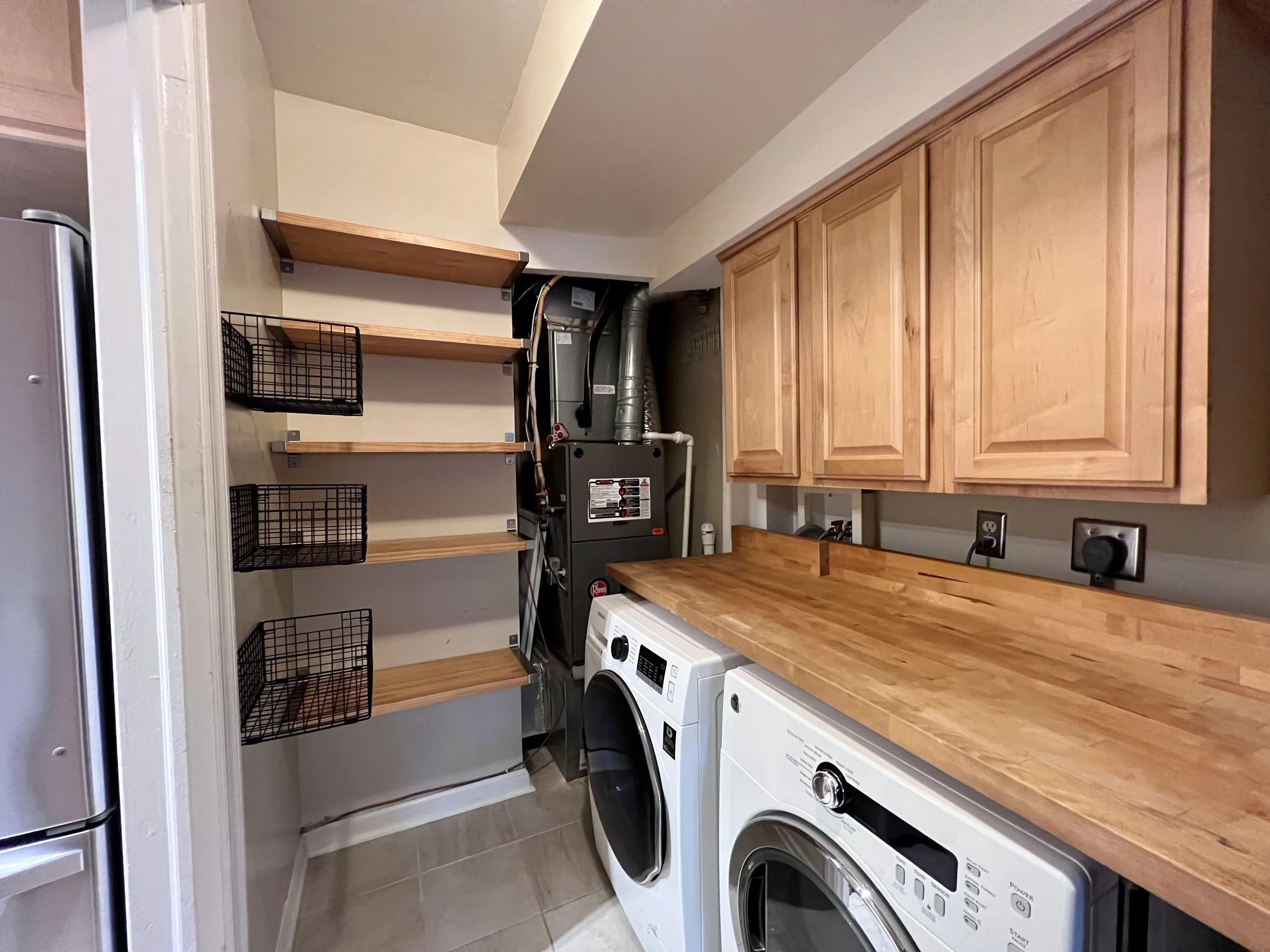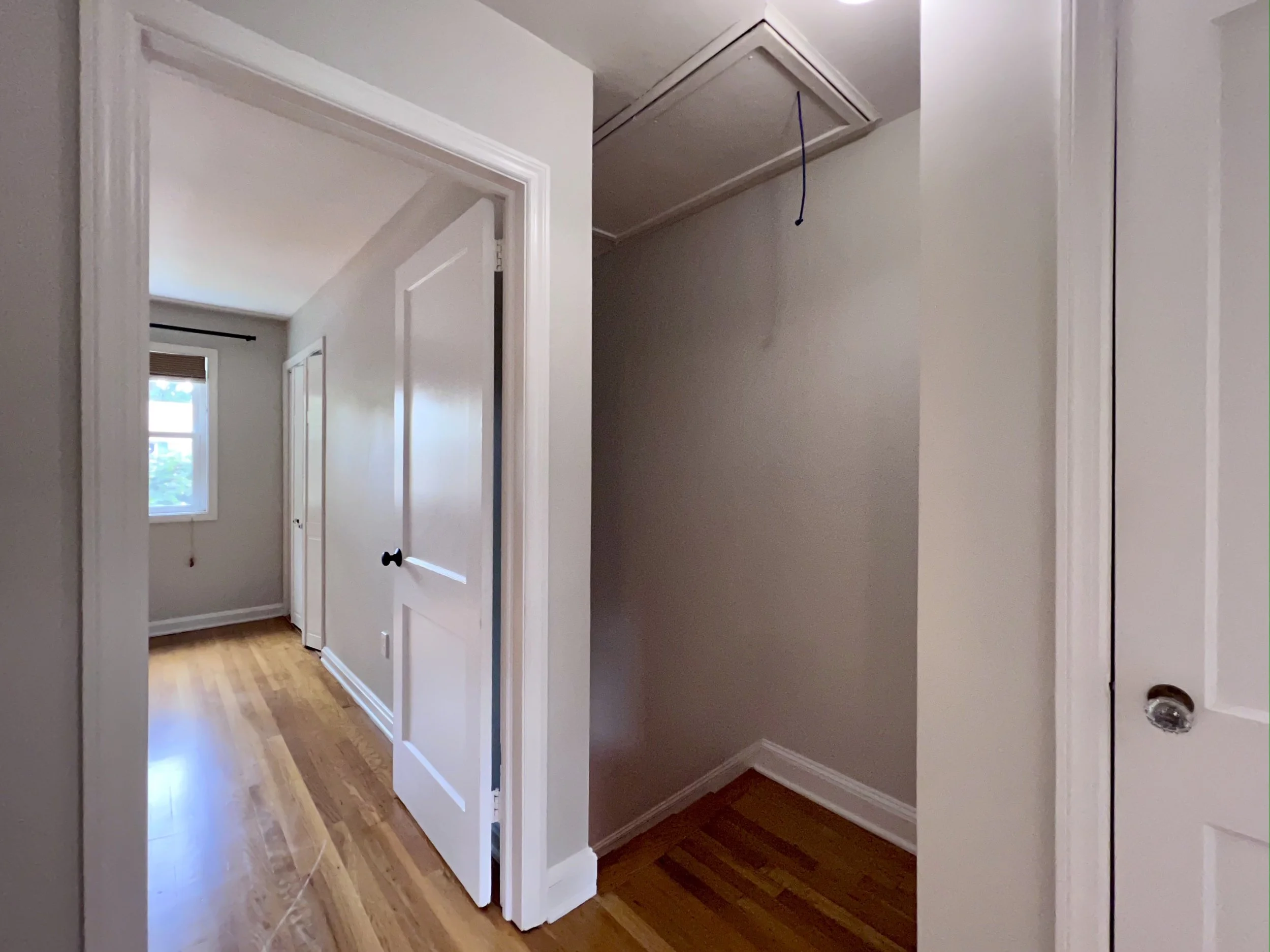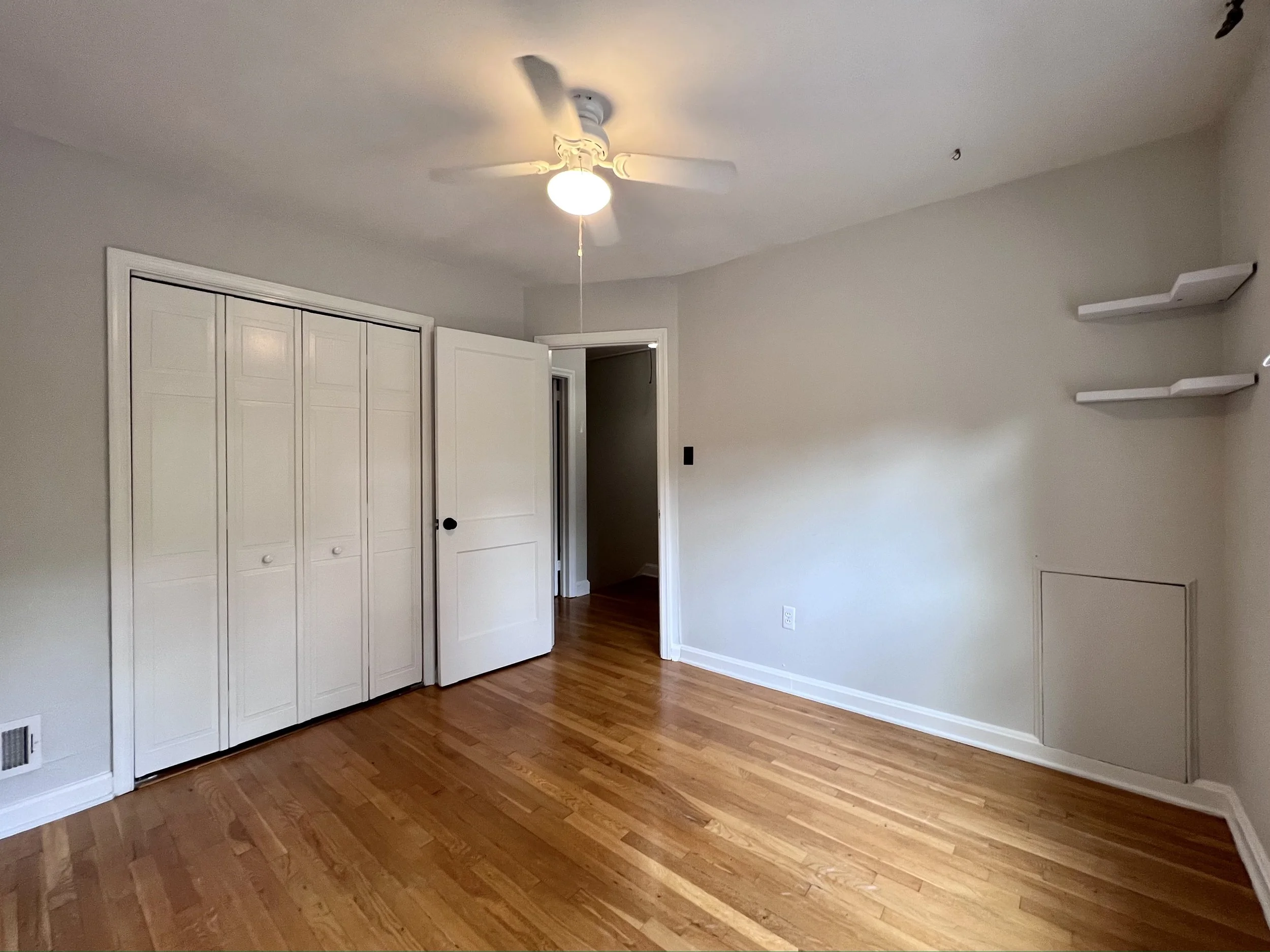 Tucked behind the kitchen you'll find extra closet space as well as the newly renovated 3rd bedroom featuring separate temperature control via mini split, recessed lighting, remote-controlled ceiling fan and awesome built-in shelves!